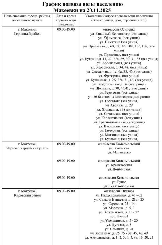 Завтра, 20 ноября, в Макеевке будет организован подвоз воды для жителей, в дома которых не поступила вода в установленный графиком день.