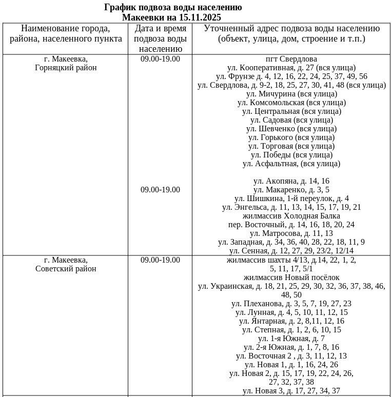 Завтра, 15 ноября, в Макеевке будет организован подвоз воды для жителей, в дома которых не поступила вода в установленный графиком день.