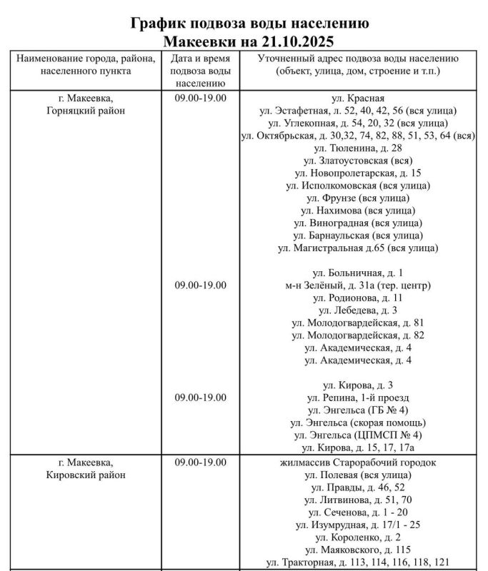 Завтра, 21 октября, в Макеевке будет организован подвоз воды для жителей, в дома которых не поступила вода в установленный графиком день.