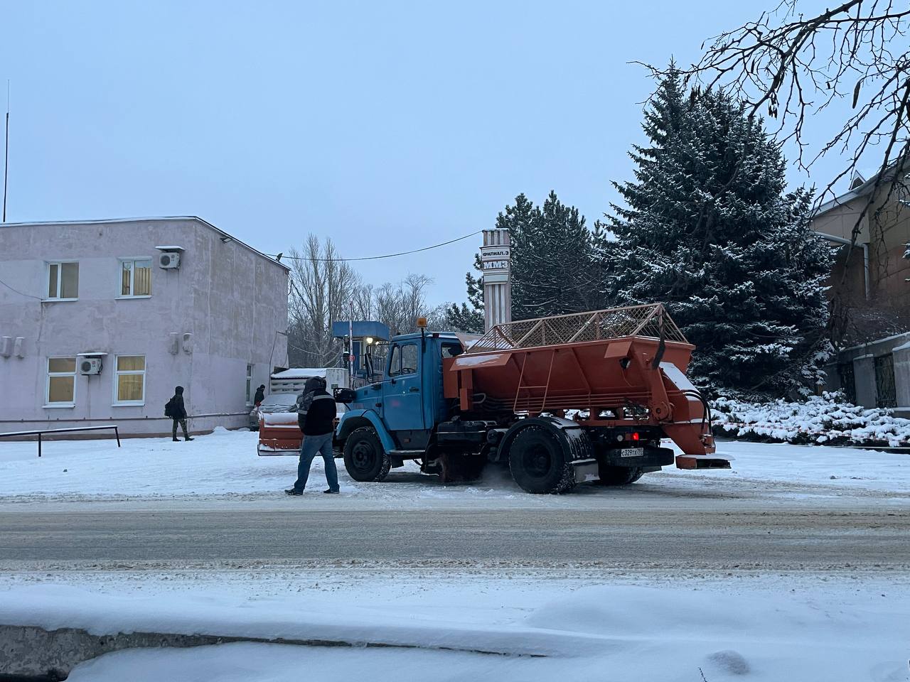 16 января, силами предприятия района ведутся работы по расчистке и посыпке противоскользящим материалом проезжей части автодороги по ул. Металлургической