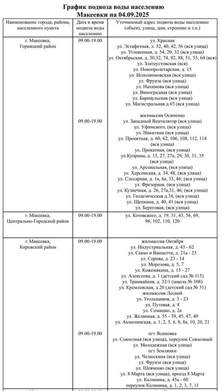 Завтра, 4 сентября, в Макеевке будет организован подвоз воды для жителей, в дома которых из-за недостаточного количества подаваемой воды не поступила вода в установленный графиком день.