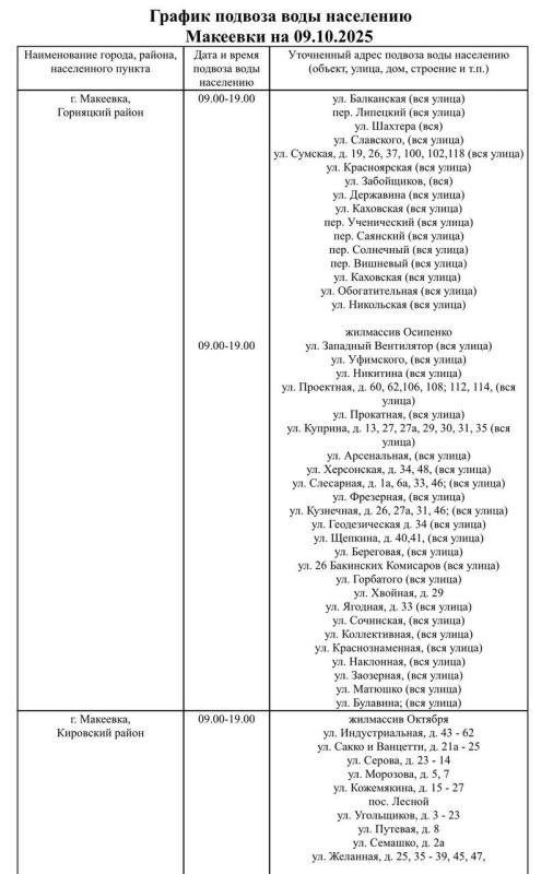 Завтра, 9 октября, в Макеевке будет организован подвоз воды для жителей, в дома которых не поступила вода в установленный графиком день.