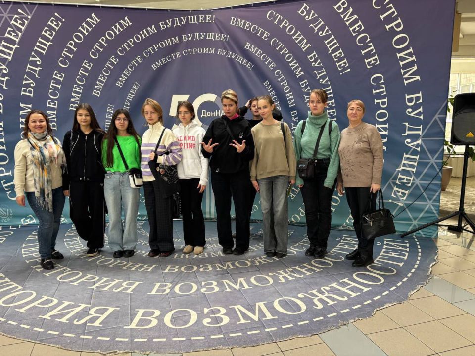 Учащиеся выпускных классов средних школ посетили данное мероприятие. Встреча проходила в зимнем саду ДОННАСА
