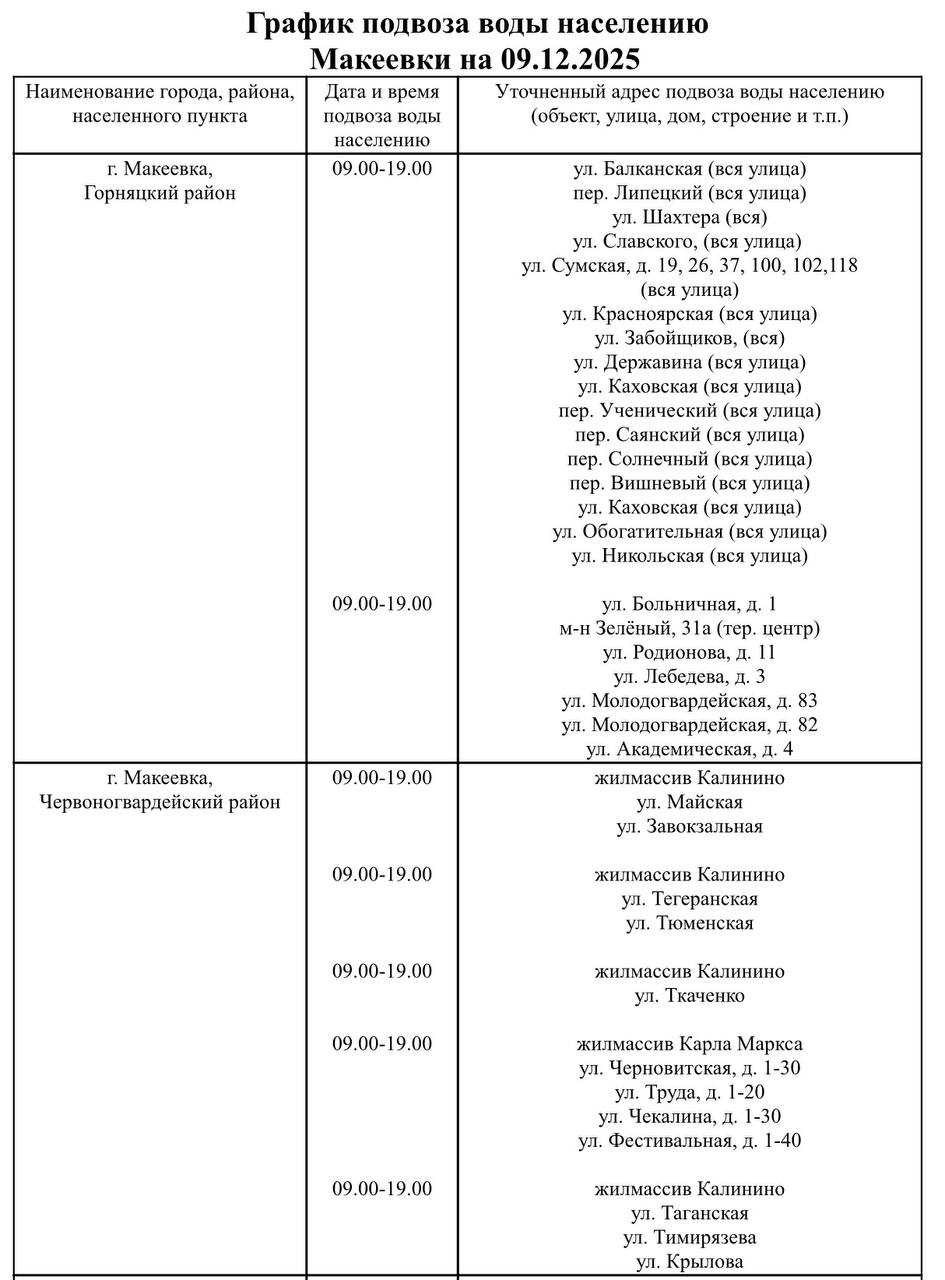 Завтра, 9 декабря, в Макеевке будет организован подвоз воды для жителей, в дома которых не поступила вода в установленный графиком день.