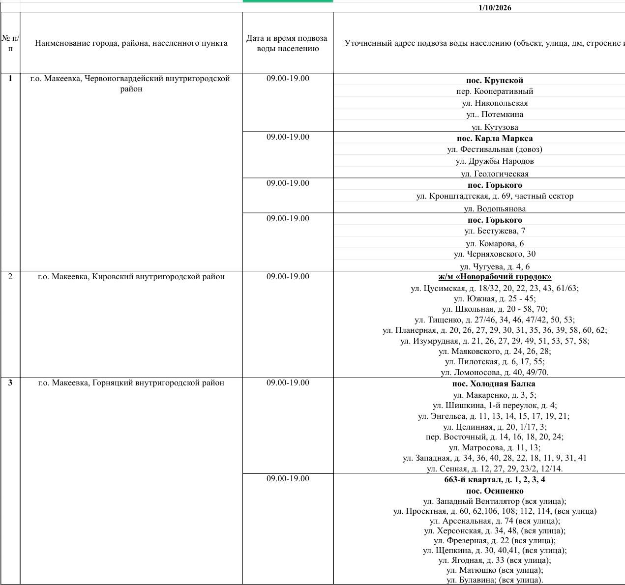 Завтра, 10 января, в Макеевке будет организован подвоз воды для жителей, в дома которых не поступила вода в установленный графиком день. Telegram | ВКонтакте | Одноклассники | Сайт | MAX | ...