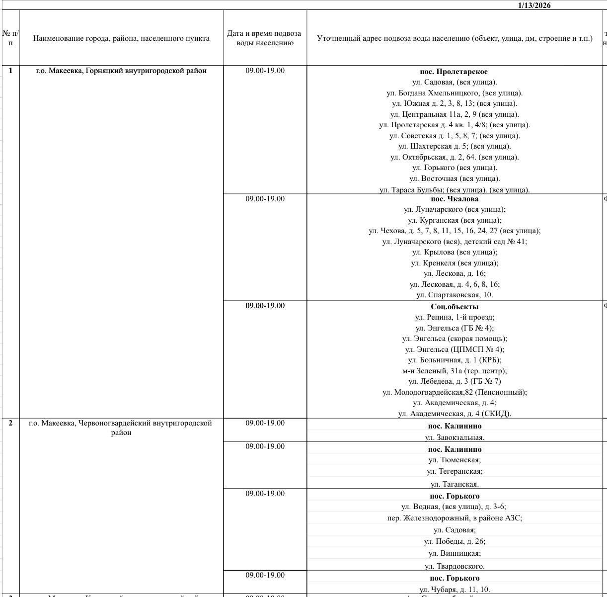 Завтра, 13 января, в Макеевке будет организован подвоз воды для жителей, в дома которых не поступила вода в установленный графиком день.