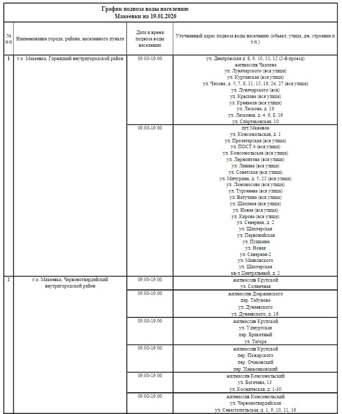 График подвоза воды населению городского округа Макеевка