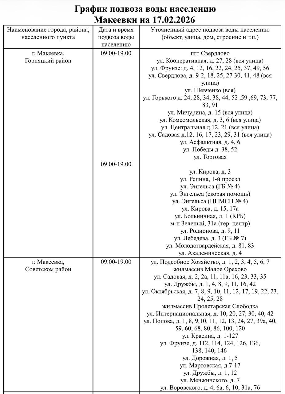 Уважаемые жители!По информации ПО Макеевские ЭС «Донецкэнерго» филиал АО «Юго - Западная Электросетевая Компания», 17.02.2026, с 10:00 до 14:00 будут проводится плановые ремонтные работы.Кратковременно, для переподключения, в течение...