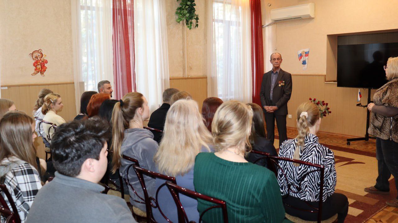 Сегодня, 27 февраля, в Муниципальном бюджетном учреждении «Городской дворец культуры им. В. Г. Кирсановой», Дворец культуры «ЯКХЗ», состоялась долгожданная встреча студентов Макеевского педагогического колледжа с участником войны в Афганистане Анпилоговым Валерием Викторовичем, который сейчас работает водителем автомобиля в городском наркологическом диспансере г. Макеевки.