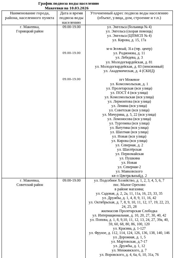 Советский район:49 кв-л, д. 2, 7 – 10.03.26;48 квартал, д. 13 – 26.03.26;64 квартал, д. 3, 6– 26.03.26;м-н Первомайский, д. 4, 6, 27– 26.03.26;м-н Магистральный, д. 1а, 4, 10– 26.03.26;ул. Автомобильная, д. 16– 26.03.26;2 квартал, д. 1, 5, 18, 24...