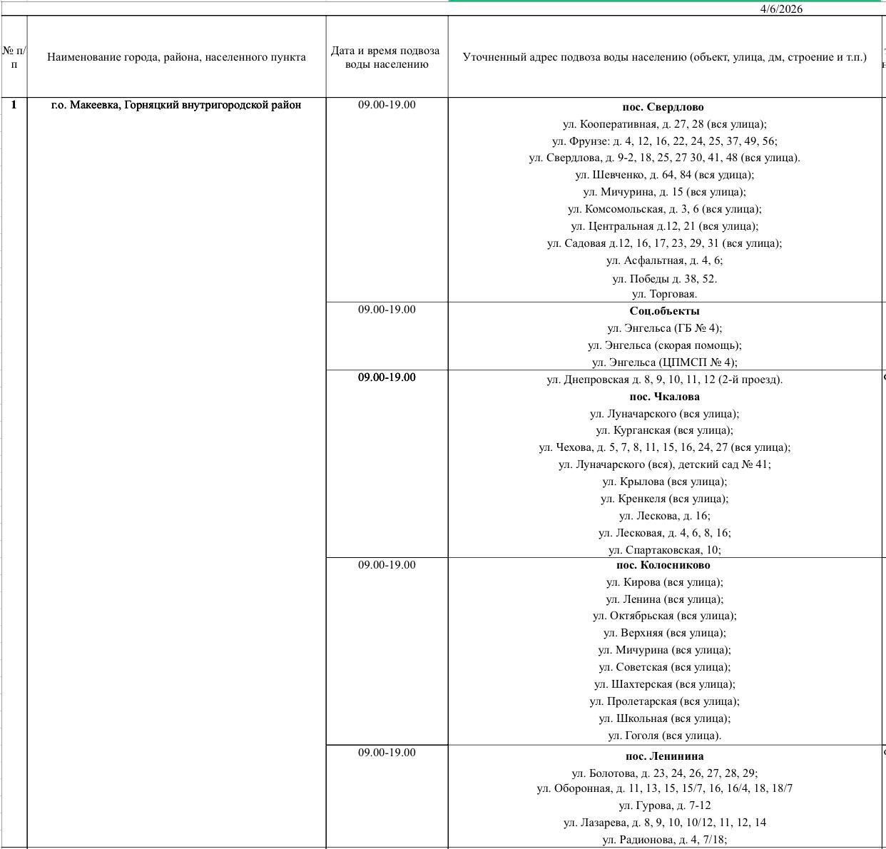 Советский район:водоснабжение:• ул. Гаврилова, д. 36-38;• ул. 40 лет Октября, (р-н шахты);водоотведение:• ул.Толстого, д. 6;• ул. Середы, д. 7, 8;• 2 м-н, д. 11;• ул. Кулабухова, д. 1, 12.С адресами, где планируются ремонтные...