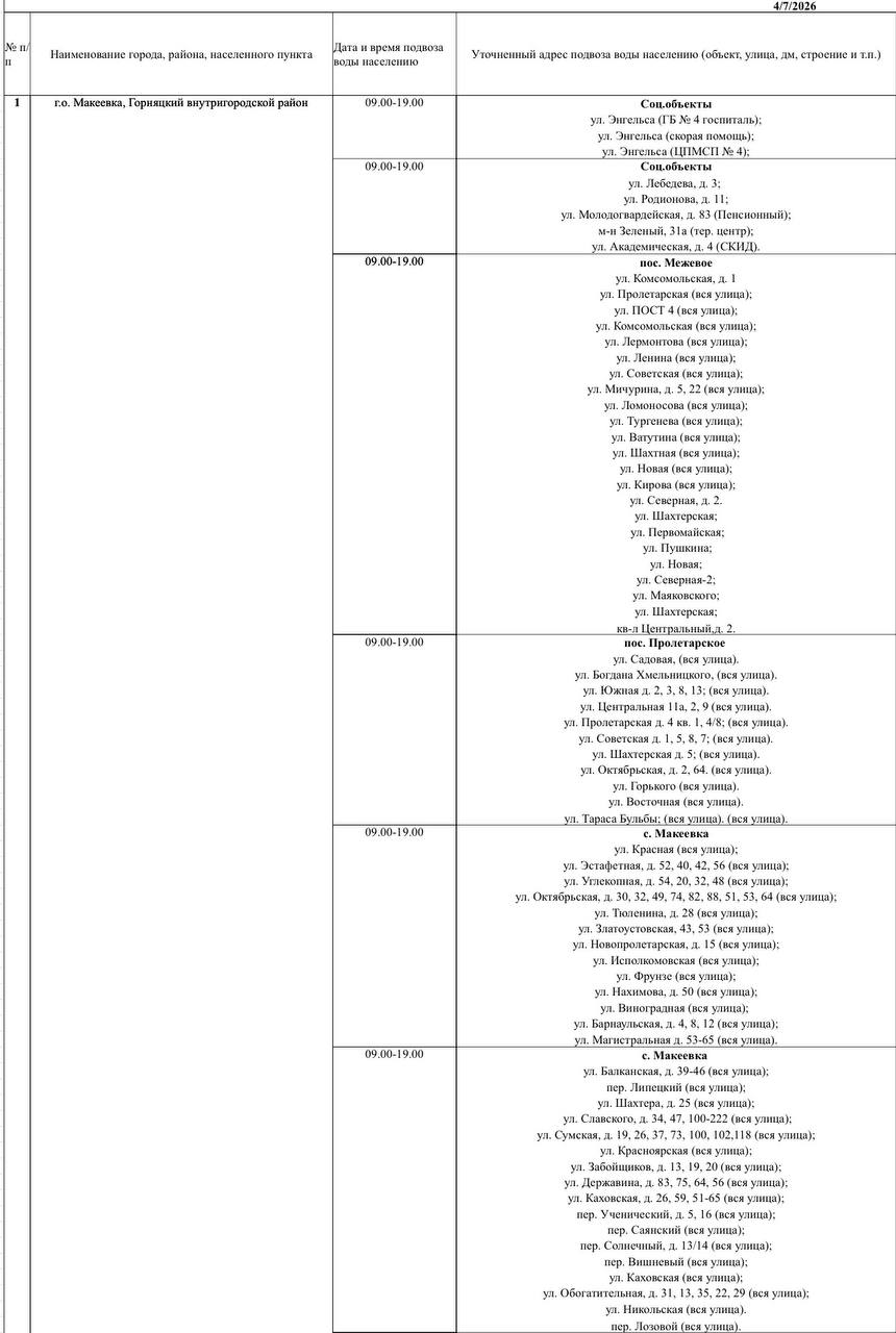 Сегодня, 6 апреля, произведен подвоз воды для жителей улиц Кальмана, Тихая, Алексеева, Матросова в жилом массиве «Путь Ильича».Сегодня, 6 апреля, филиалом «Макеевское ПУВКХ» ГУП ДНР «Вода Донбасса» ведутся работы по устранению порыва холодного...