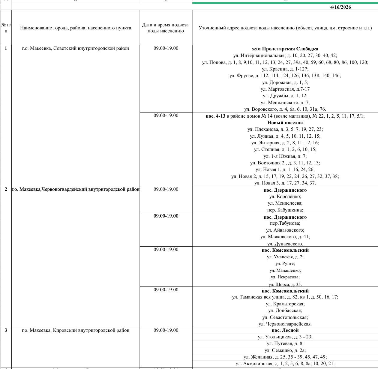Сегодня, 15 апреля, согласно поступившим заявкам произведен подвоз воды для жителей ул. Шаумяна, ул. Фадеева, ул. Матросова, ул. Руставели, ул. Кремлевской в жилом массиве «Путь...