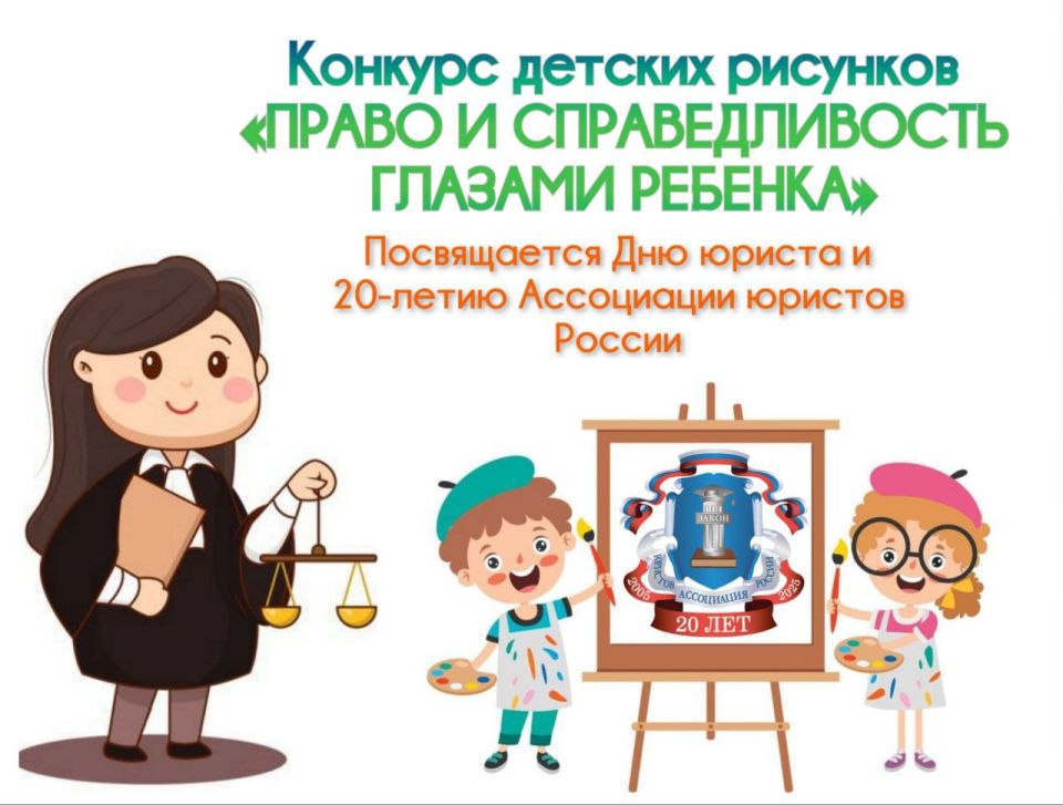 ОБЪЯВЛЯЕТКОНКУРС ДЕТСКИХ РИСУНКОВ«ПРАВО И СПРАВЕДЛИВОСТЬ ГЛАЗАМИ РЕБЕНКА»(Посвящается Дню юриста и 20-летию Ассоциации юристов России)Конкурс проводится в трех возрастных категориях:* Категория 1: 5-7 лет,* Категория 2: 8-11 лет,* Категория...